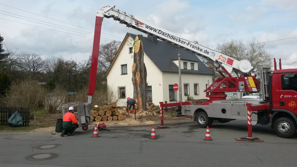 In vielen Fällen ist der Platz für eine Standart Baumfällung nicht ausreichend oder nicht gefahrlos möglich. In diesen Fällen wird der Baum mittels Hubarbeitsbühne von uns abgetragen. Wir können dabei ohne Probleme auf Hubarbeitsbühnen bis 35 Meter zugreifen.