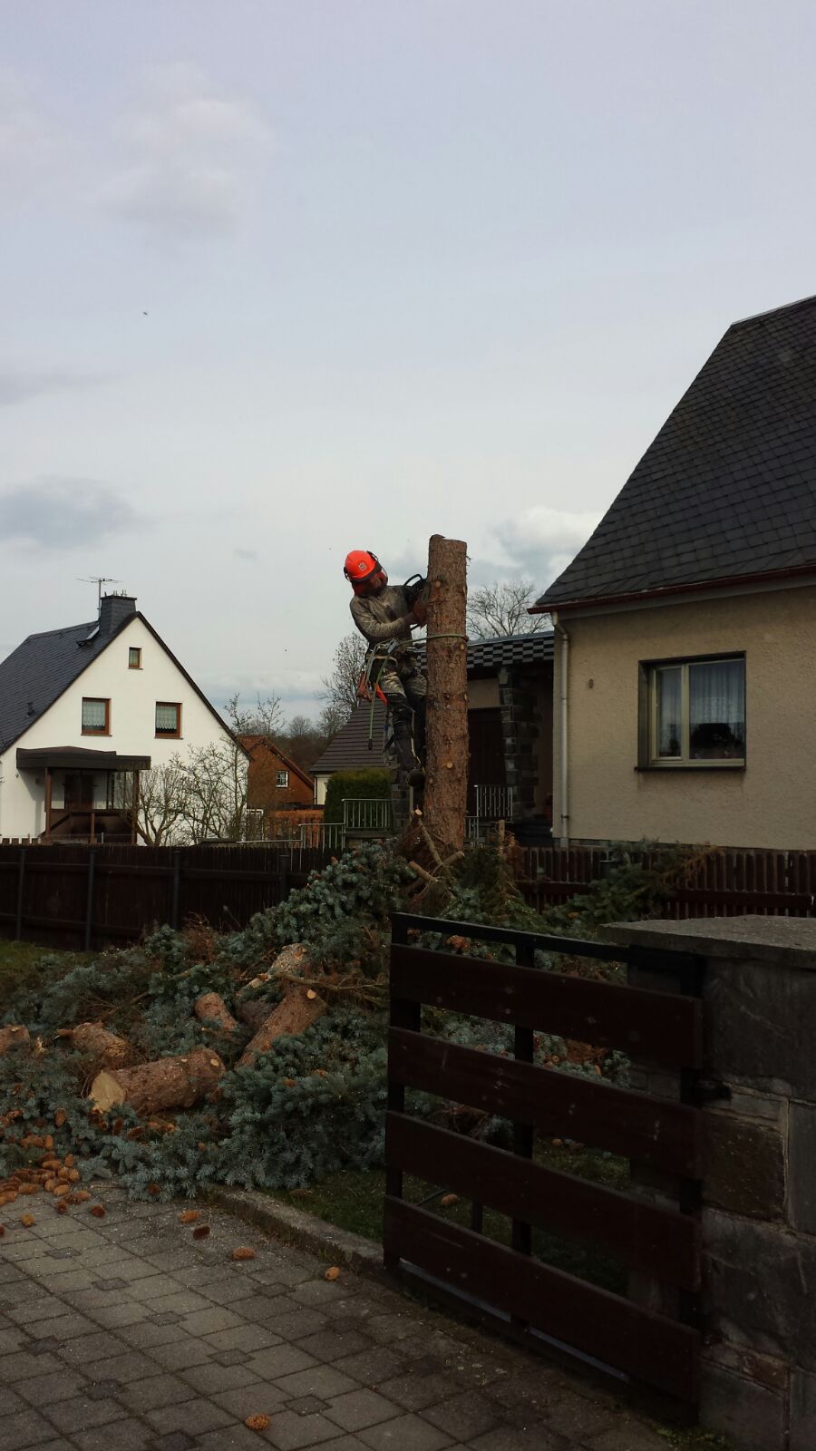 Können Bäume nicht im Standardverfahren gefällt werden oder die Stellung einer Hubarbeitsbühne ist nicht möglich, wird der Baum mit Hilfe der Seilklettertechnik (SKT) von uns abgetragen. Die Sicherheit bei dieser Arbeitsweise steht für uns im absoluten Vordergrund! Wir besuchen jährlich Fortbildungen mit einem Gesamtpensum von 70 Stunden.